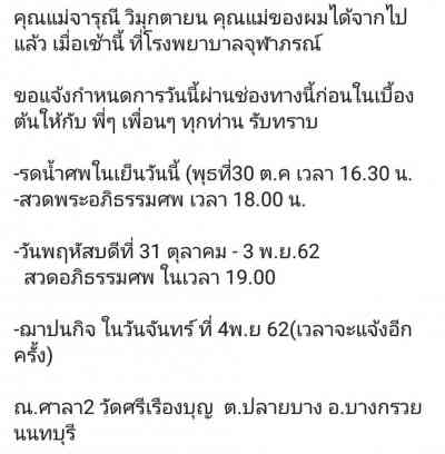 ณ ศาลา 2 วัดศรีเรืองบุญ ต.ปลายบาง อ.บางกรวย จ.นนทบุรี |