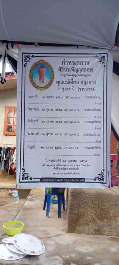 ข้อความไว้อาลัยทั้งหมด เกิดจากการเขียนโดยสาธารชน และทำการส่งขึ้นมาแบบอัตโนมัติ ทาง mesati.com ไม่รับผิดชอบต่อข้อความใดๆทั้งสิ้น เพราะไม่สามารถระบุได้ว่าเป็นความจริงหรือ ชื่อผู้ไว้อาลัยที่ได้เห็นคือชื่อจริง ผู้ร่วมไว้อาลัยท่านอื่นจึงควรใช้วิจารญาณในการอ่านคำไว้อาลัย ถ้าหากท่านพบเห็นข้อความใดที่ขัดต่อกฏหมายและศีลธรรม หรือเป็นการกลั่นแกล้งเพื่อให้เกิดความเสียหาย ต่อผู้เสียชีวิต หรือ ญาติมิตรของผู้เสียชีวิต กรุณาส่ง email มาที่ suppport@mesati.com เพื่อให้ผู้ควบคุมระบบทราบและทำการลบข้อความนั้นออกจากระบบ ขอขอบพระคุณผู้ใช้บริการ mesati.com ทุกท่าน ณ โอกาสนี้